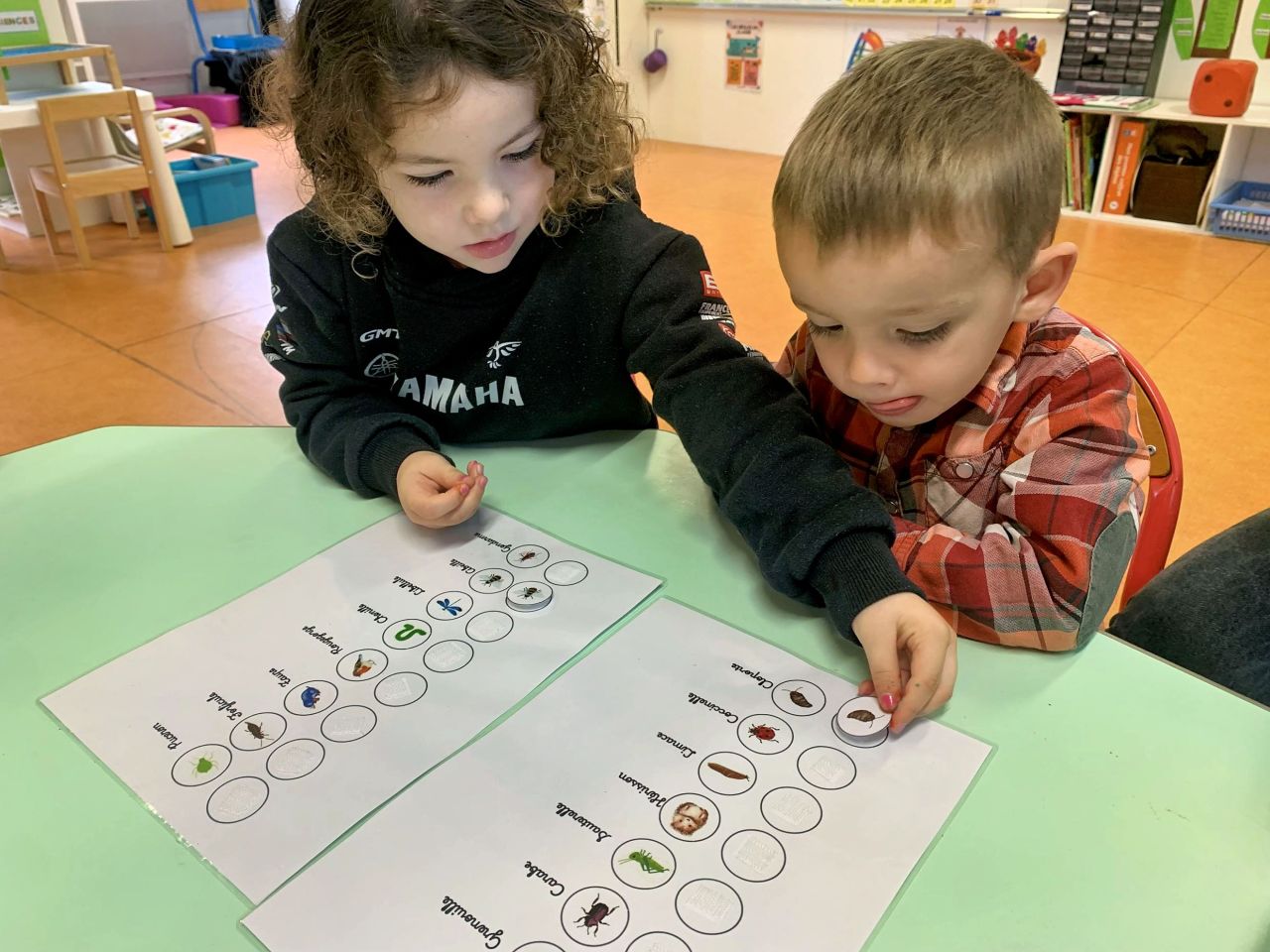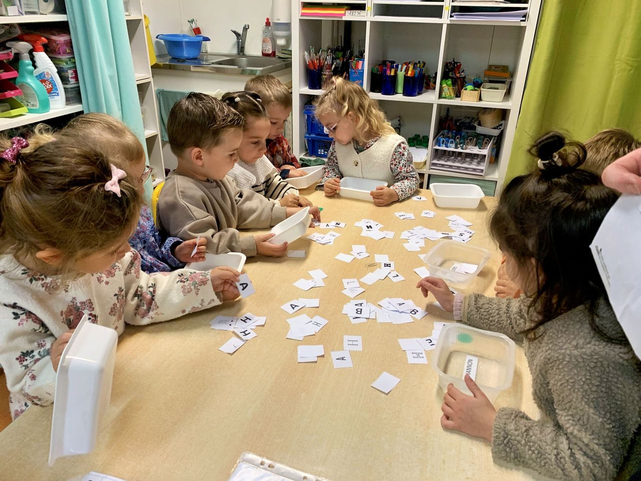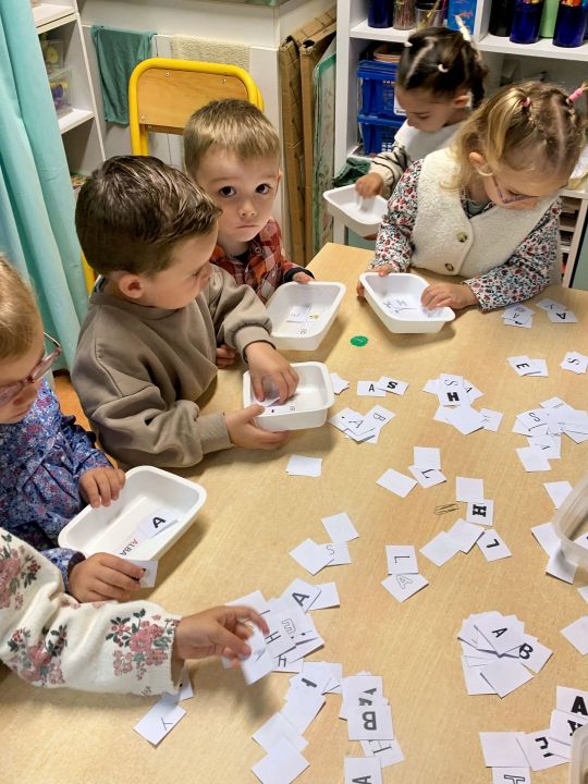 Les élèves de petite section ont déployé beaucoup d’énergie aujourd’hui pour retrouver toutes les initiales de leur prénom, après avoir travaillé sur la reconnaissance du prénom de chaque enfant!