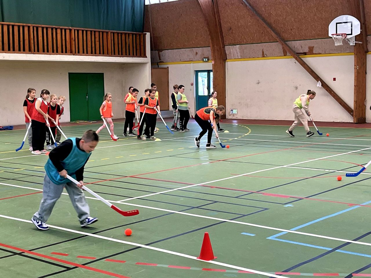 Le premier sport travaillé avec Samuel est le hockey. Très belle découverte pour la classe de CM2 !