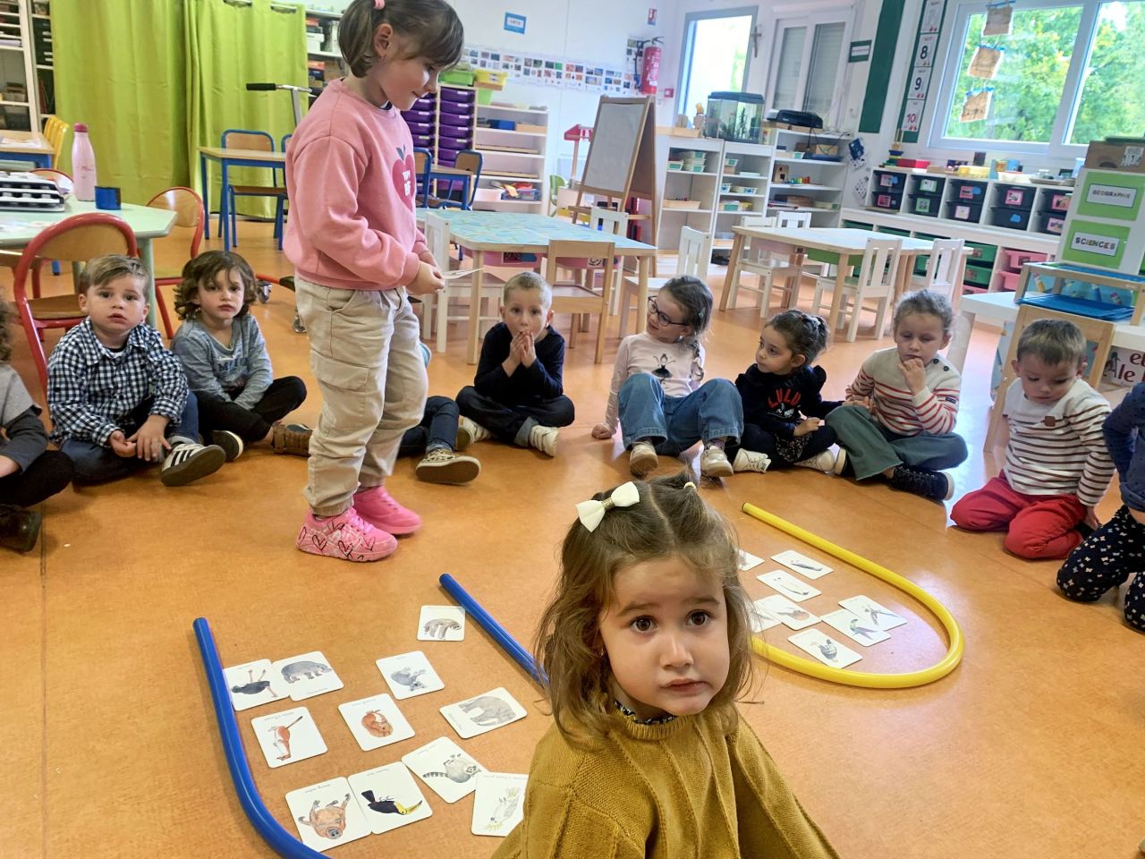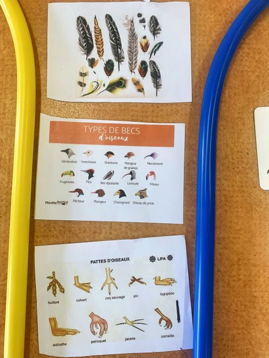 Pour cela, nous avons trié des cartes avec différentes espèces animales. Il fallait mettre les oiseaux d’un côté et les animaux qu’on pensait ne pas être des oiseaux de l’autre . Chaque enfant a pu participer et s’exprimer pour présenter sa carte.