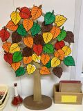 Nous avons identifié les couleurs de l’automne, et travaillé la tenue du crayon.