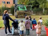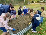 Puis le papa de Faustine est venu remplir nos carrés potagers de terre. Un grand merci à lui. Les élèves étaient épatés par la venue du tracteur à l’école.