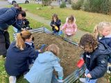Aujourd’hui était une belle journée sous le signe du potager. Ce matin nous avions une intervention d’Anne Sophie de l’association verdure et terreau, qui est venue nous parler du rôle des animaux et des insectes dans le développement d’un beau potager. Nous avons découvert les petites bêtes qui interviennent dans notre sol à travers quelques ateliers, puis nous avons réalisé un bel hôtel à insectes et installé une mangeoire pour nourrir les oiseaux jusqu’au printemps.